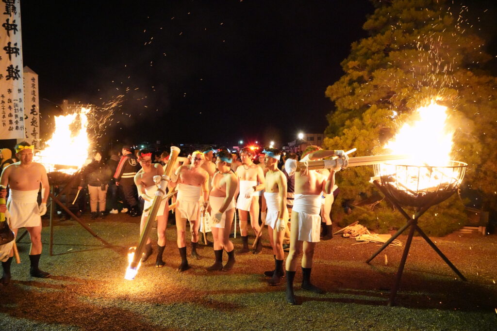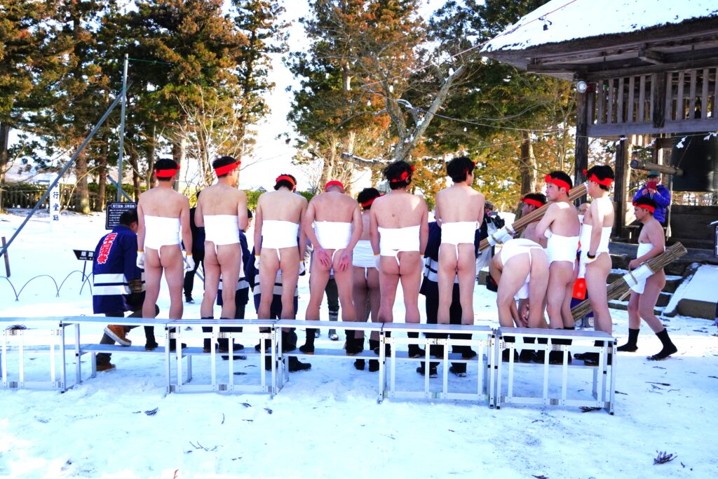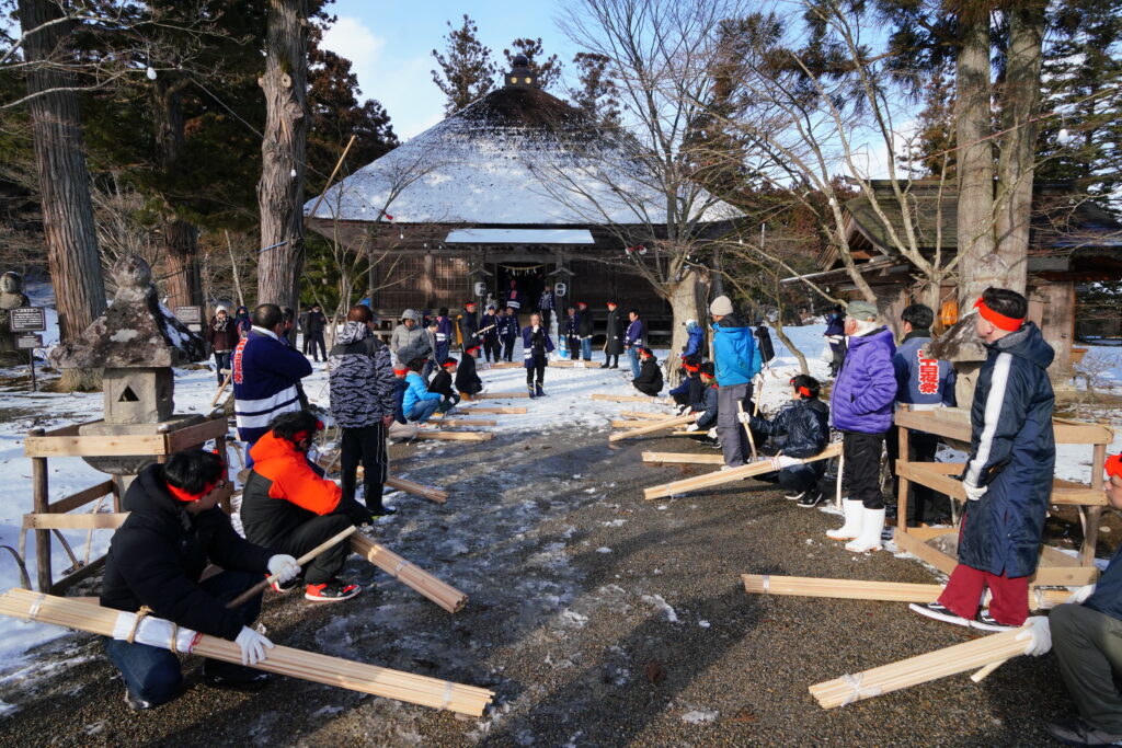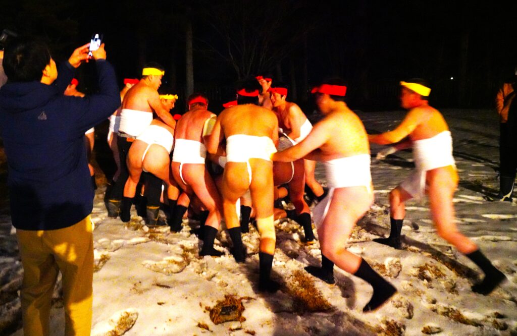 直会をおこなって今年の年男(42の厄年)たちは、極寒の外に出ていく前に熱燗を飲んでいい塩梅に身体を仕上る。